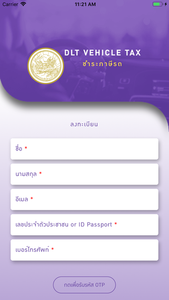 ภาษีรถยนต์ DLT ใช้งานได้บน iOS 12.1.2 ขึ้นไป เวอร์ชันปัจจุบันของโปรแกรมคือ 1.7.0 และคุณสามารถเรียกใช้ได้ในภาษาอังกฤษเท่านั้น